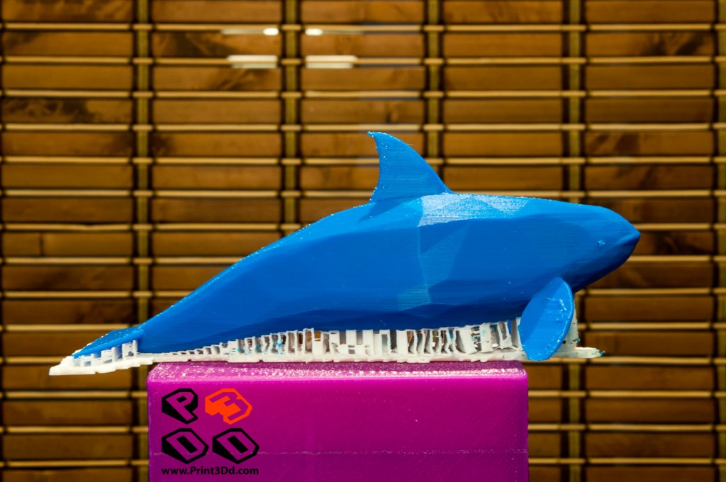 เรามาแสดงความสามารถของเครื่องพิมพ์สองหัวฉีดกันนะครับคราวนี้ โมเดลที่นำมาลองนั้นเป็นวาฬ แถบไม่มีจุดสัมผัสกับฐานพิมพ์เลย ต้องให้โปรแกรมเจน Support มาช่วยในการสร้าง