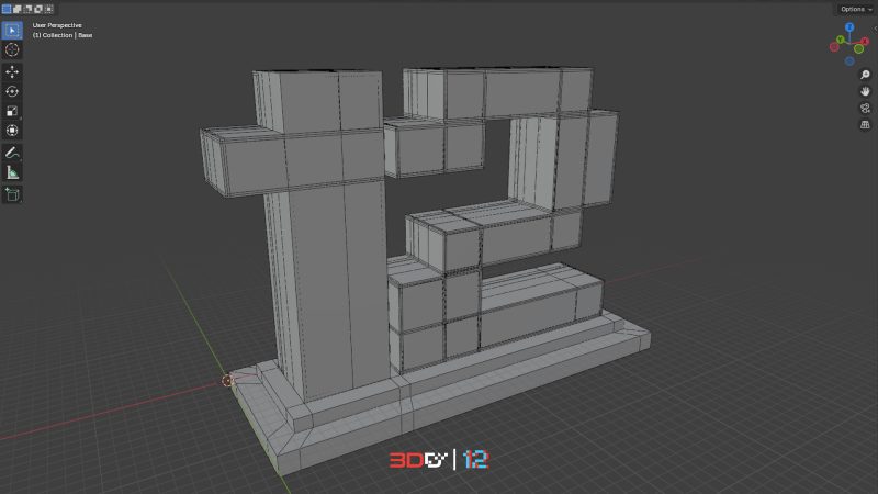 โมเดลตัวอักษรของเราเสร็จแล้วมาทำฐานวางกันเลย ฐานวางก็ทำง่ายๆเลยเป็นฐานสี่เหลี่ยมแนวยาวเพิ่มขั้นบันไดซัก 1 Step ให้ดูมีลูกเล่นและล้อกับโลโก้ที่เป็นเหลี่ยมๆ