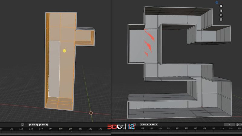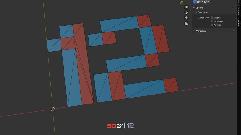 อย่างแรกเลยคือสามารถนำเข้าไฟล์ Vector ของโลโก้ “12” สกุล .SVG เพื่อ Extrude ดึงขึ้นเป็น 3 มิติ ได้เลย แต่งานของเราจำเป็นต้องให้ความสำคัญกับโครงสร้างที่แบ่งสีกัน เลยต้องสร้าง Model