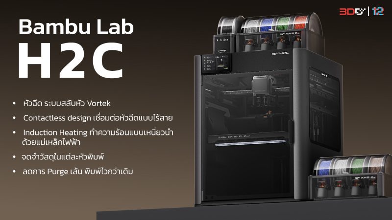 Bambu Lab H2C พิมพ์โมเดลสีจบในเครื่องเดียว