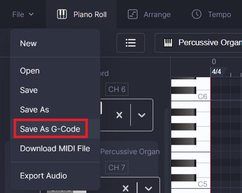 เลือกกำหนด Chord, Base, Main theme - Export G-Code