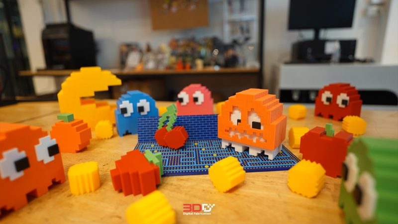 ในที่สุด เราก็ได้เห็น Pac-Man และเหล่า Ghosts สีสันสดใสที่พิมพ์ด้วยเส้น 3DD เรียงรายอยู่ตรงหน้า ชิ้นงานเล็ก ๆ ที่ยืนยันได้ดีเลยว่า “สีเดียวไม่เคยพอ” จริง ๆ 💛