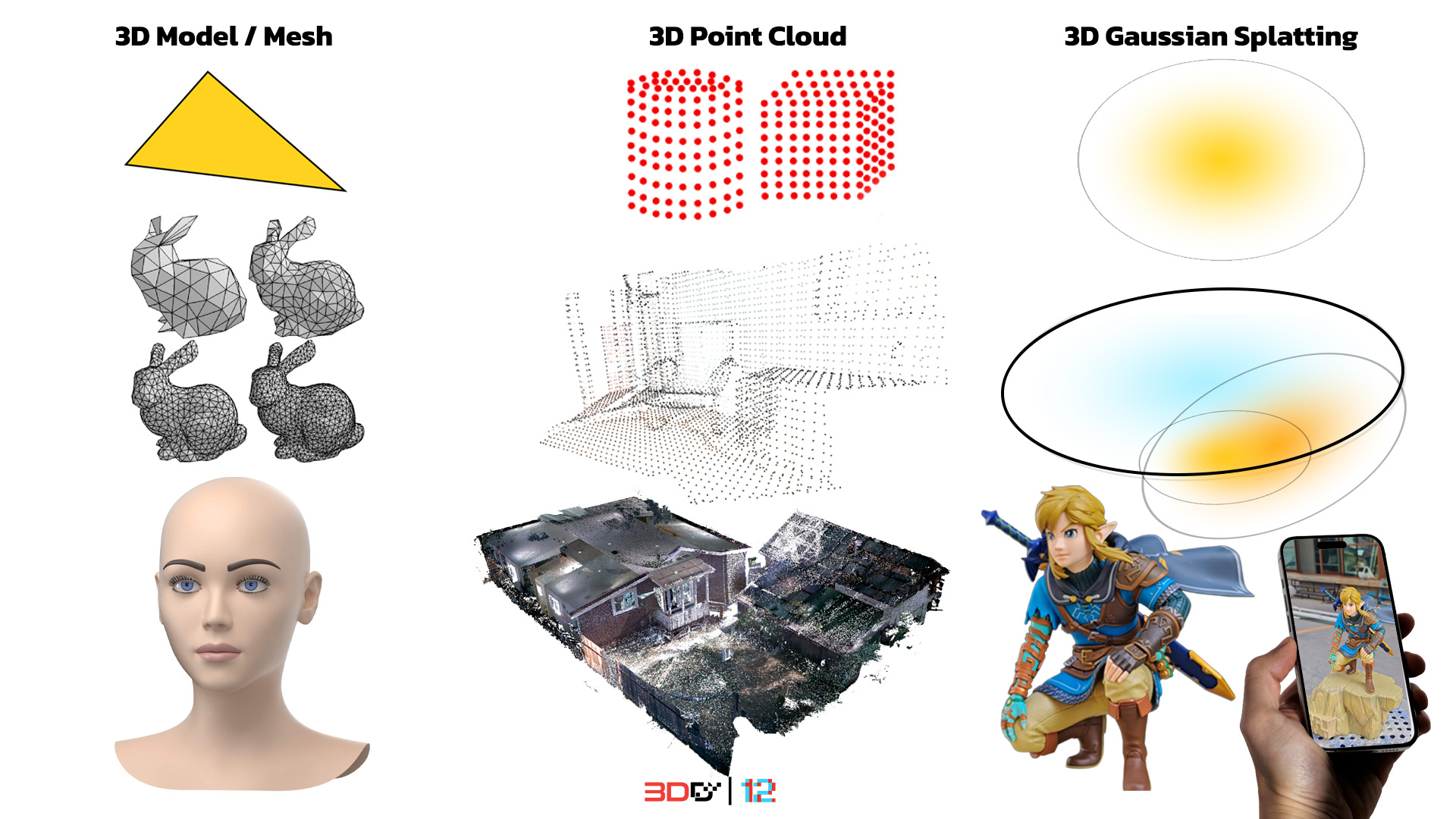 ความแตกต่างระหว่าง 3D Mesh, Point Cloud และ 3DGS