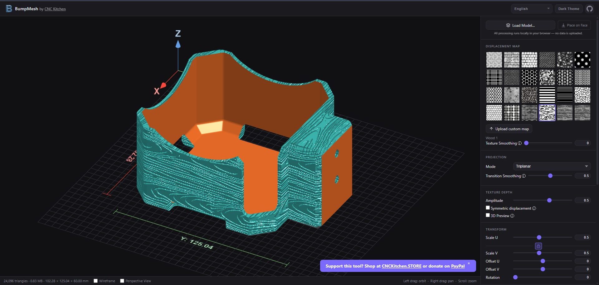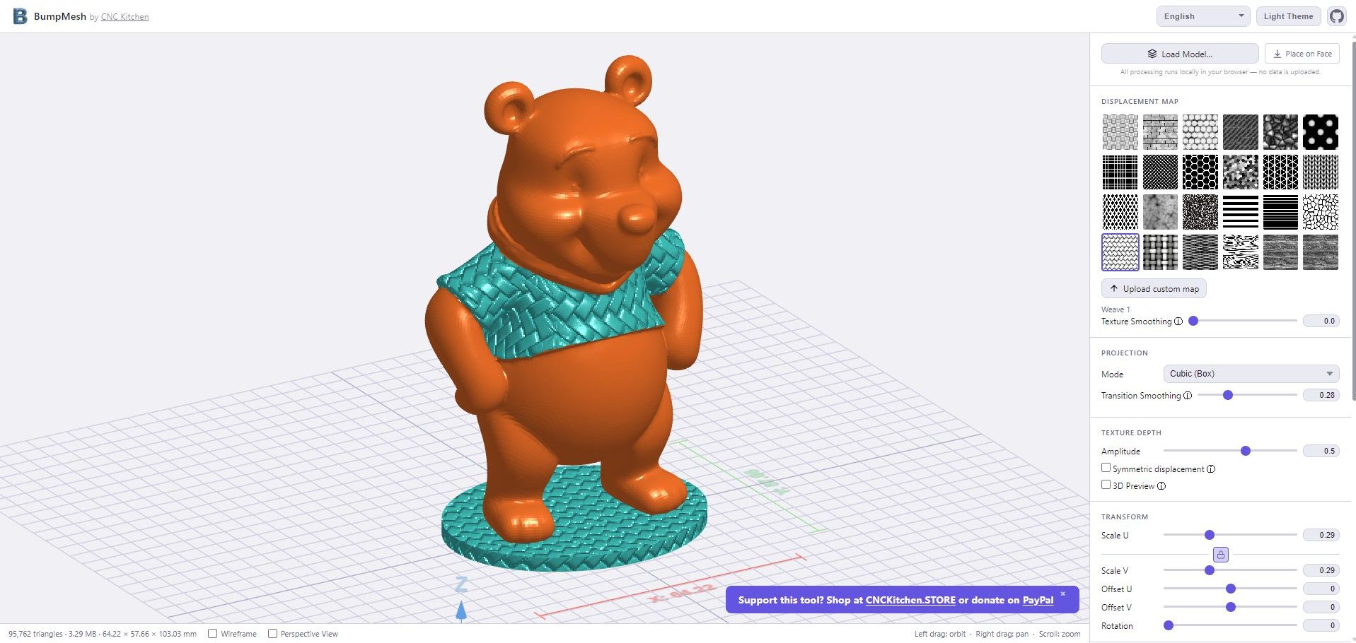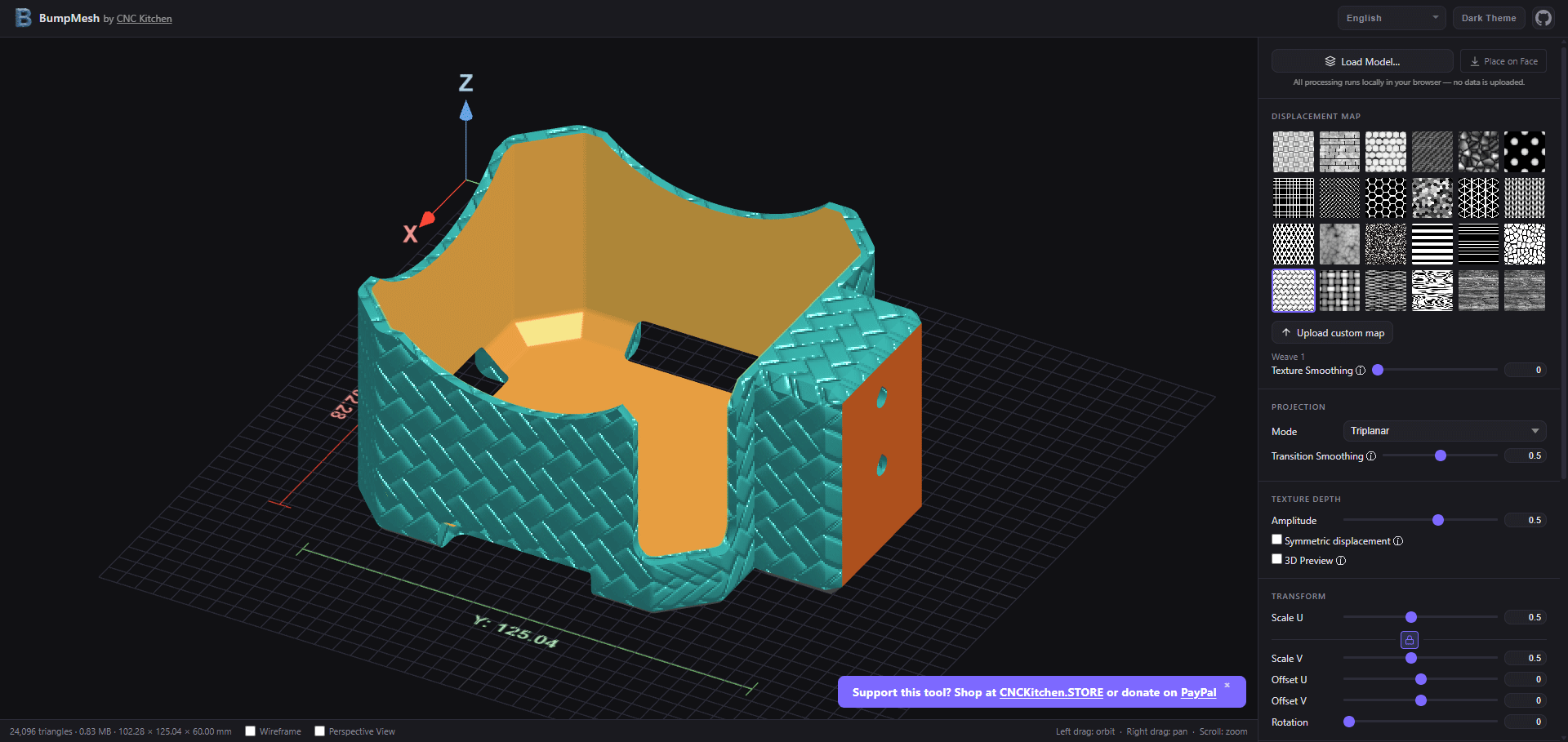 คุณ Stefan จาก CNC Kitchen ได้สร้างเว็บ BumpMesh เพื่อช่วยให้การใส่พื้นผิวลวดลายต่าง ๆ ให้กับโมเดล 3 มิติของคุณเป็นเรื่องง่ายอย่างยิ่ง