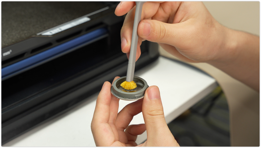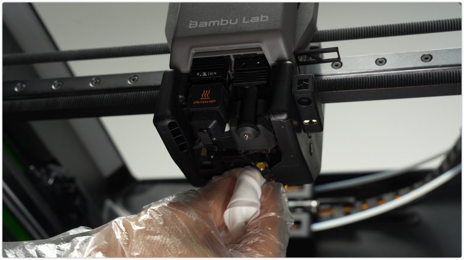 ต้องให้ฟองน้ำเปียกน้ำให้ชุ่มอยู่เสมอก่อนเช็ด รายละเอียดการทำด้ามจับ โปรดดูที่นี่ https://wiki.bambulab.com/en/general/nozzle-cleaning-sponge