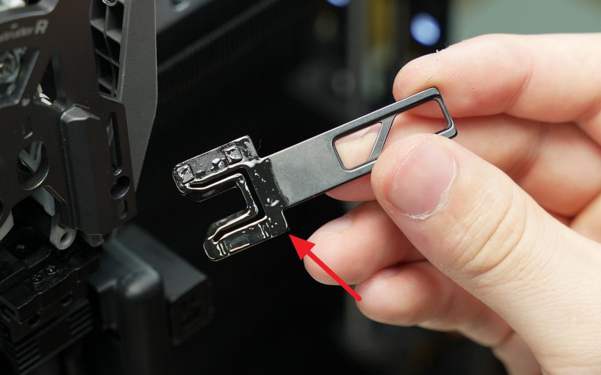 แล้วอย่าลืมทาน้ำมันใต้รางลิเนียร์ด้วย ระวังอย่าใส่น้ำมันมากเกินไปจนหยดลงบนแท่นพิมพ์ เสร็จแล้วอย่าลืมเช็ดน้ำมันส่วนเกินออกไปด้วย