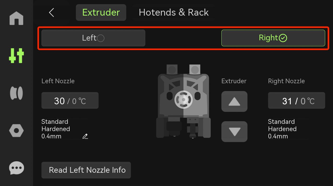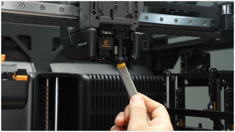 | หัวพิมพ์ด้านซ้าย | Hotend replacement guide for the H2D | ในการพิมพ์วัสดุทั่วไป เช่น PLA และ PETG ควรทำความสะอาดหัวฉีดทุก 5 ม้วน เมื่อพิมพ์วัสดุที่ผสมเส้นใยคาร์บอนควรทำความสะอาดหัวฉีดทุก 2 ม้วน ถ้าหัวฉีดสึกจนมีพลาสติกรั่วไหลออกมา และการทำความสะอาดปรกติไม่ช่วยแล้ว ก็ควรเปลี่ยนอันใหม่ |