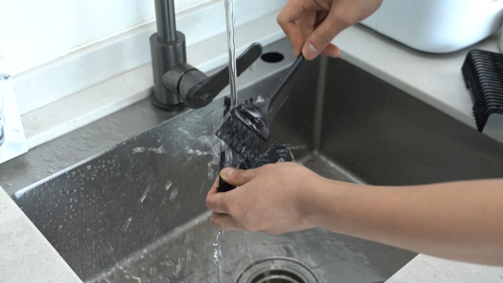 ถ้าบานเกล็ดมีคราบสกปรดติดแน่นมาก ปัดไม่ออก ให้ล้างด้วยน้ำ แล้วใช้แปรงปัดสิ่งสกปรกออก