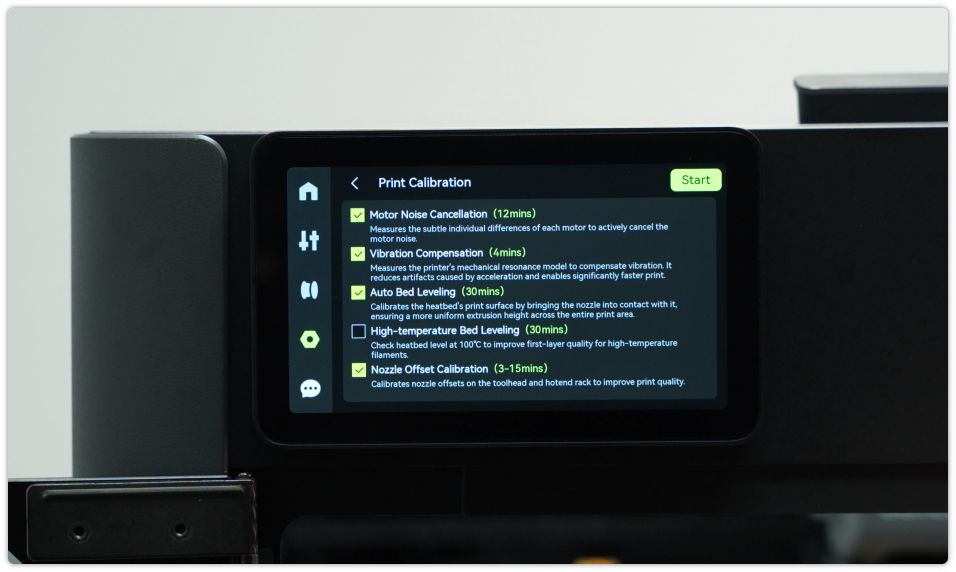 เมื่อบำรุงรักษาเครื่องพิมพ์ตามรายการด้านบนแล้ว ให้ทำการคาลิเบรทเครื่องพิมพ์เต็มรูปแบบ โดยสั่งจากหน้าจอแสดงผลของเครื่องพิมพ์ เลือกหัวข้อทั้ง 4 ตามภาพด้านล่าง เมื่อเสร็จแล้วเครื่องพิมพ์ก็พร้อมสำหรับการพิมพ์งานใหม่แล้ว