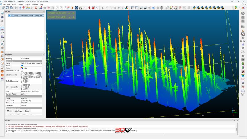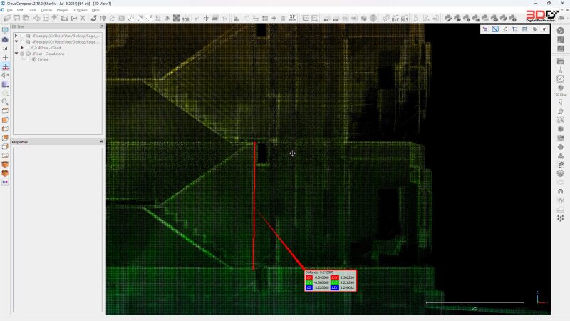 แต่กับ Cloud Compare เราจะทำงานง่ายขึ้นมากๆ เพราะนอกจาก เราจะสามารถฝังสีที่แสดงผลตามความสูงไปกับไฟล์ Point Cloud ได้แล้ว ในการนำเสนอด้วยโปรแกรม Cloud Compare ยังมีขนาด