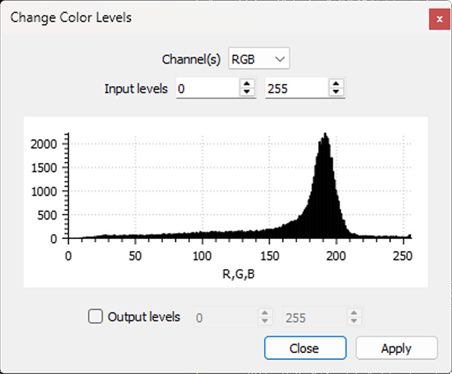 โดยไปที่ Edit>Colors>Levels จะมีพารามิเตอร์คล้ายกับเวลาเราปรับแสงใน Photoshop หรือโปรแกรมแต่งภาพอื่นๆ โดยจะแบ่งเป็น Input Levels และ Output levels ช่องฝั่งซ้ายหรือ 0