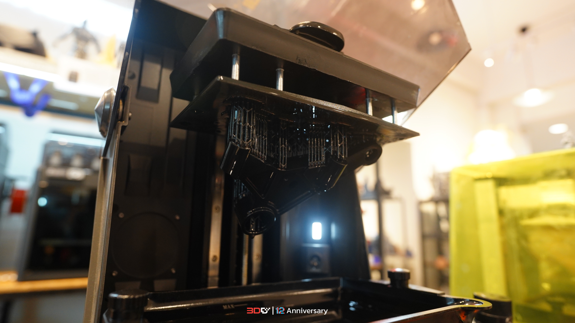 เมื่อออกแบบเสร็จแล้ว เราจะนำไฟล์ที่ได้ไปพิมพ์เป็นตัวชิ้นงานเรซิ่น แต่ยังคงไม่สามารถนำไปใช้งานจริงได้ เพราะความแข็งแรงของวัสดุพิมพ์ยังสู้โลหะ เช่น อะลูมิเนียมหรือเหล็กไม่ได้ สำหรับการพิมพ์ต้นแบบครั้งนี้ เราเลือกใช้เครื่องพิมพ์ 3 มิติระบบเรซิ่นของ Elegoo รุ่น Saturn 4 Ultra 16K แทนการใช้ระบบ FDM ที่เป็นที่นิยมกัน เนื่องจากต้องการชิ้นงานที่มีพื้นผิวงานที่เรียบเนียน สวยงาม และให้ความรู้สึกใกล้เคียงชิ้นงานจริงๆ มากที่สุด