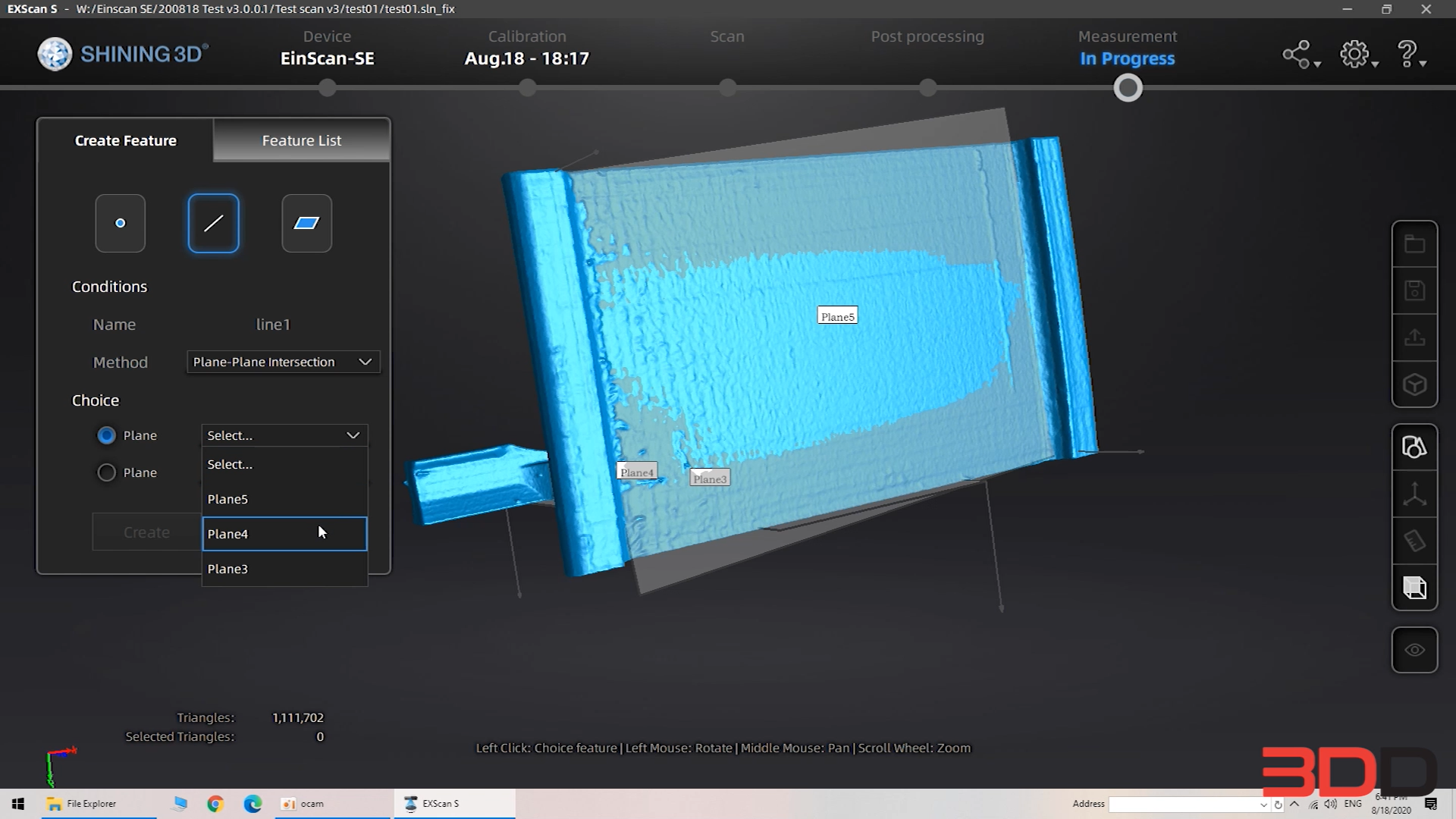 จนถึงขั้นตอนนี้แล้วสามารถนำไฟล์ำปใช้ต่อได้หรืออาจจะปรับความชัดความนุ่มนวลของตัวงาน ลดขนาดได้อีกก็แล้วแต่ผู้ใช้งาน ซึ่งในเวอร์ชั่นเก่าของEinscan SE จะทำขั้นตอนสุดท้ายได้ถึงตรงนี้ แต่เวอร์ชั่นใหม่ที่เพิ่มเข้ามาจะมีการจัดชิ้นงานเข้าOrigin คือการนำชิ้นงานเข้าแกนXYZ และสามารถวัดระยะ พื้นที่ผิวและปริมาตรของชิ้นงานได้เบื้องต้นซึ่งสามารถชมได้ต่อจากนี้เลย