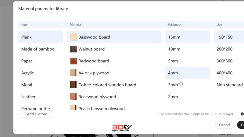 แม้แต่การตั้งค่าการเลเซอร์ที่ซับซ้อนสำหรับมือใหม่ ก็กลายเป็นเรื่องง่าย เพียงแค่เลือก Preset ที่ตั้งค่าพร้อมใช้งานสำหรับแต่ละวัสดุ ระบบจะปรับความแรงและความเร็วให้เหมาะสม การตัดหรือแกะสลัก