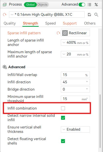 ในการพิมพ์ 3D มีเรื่องหนึ่งที่ทำให้เราหงุดหงิดได้บ่อย ๆ ก็คือมันใช้เวลาพิมพ์นาน แม้เครื่องพิมพ์สมัยนี้จะพิมพ์เร็วขึ้นแค่ไหนก็ยังไม่ทันใจอยู่ดี แต่เรามีคำสั่งหนึ่งที่จะช่วยให้งานพิมพ์เสร็จเร็วขึ้น นั่นก็คือ Infill combination ซึ่งอยู่ในหัวข้อ Strength ใน slicer เช่น ของ BambuStudio เป็นต้น