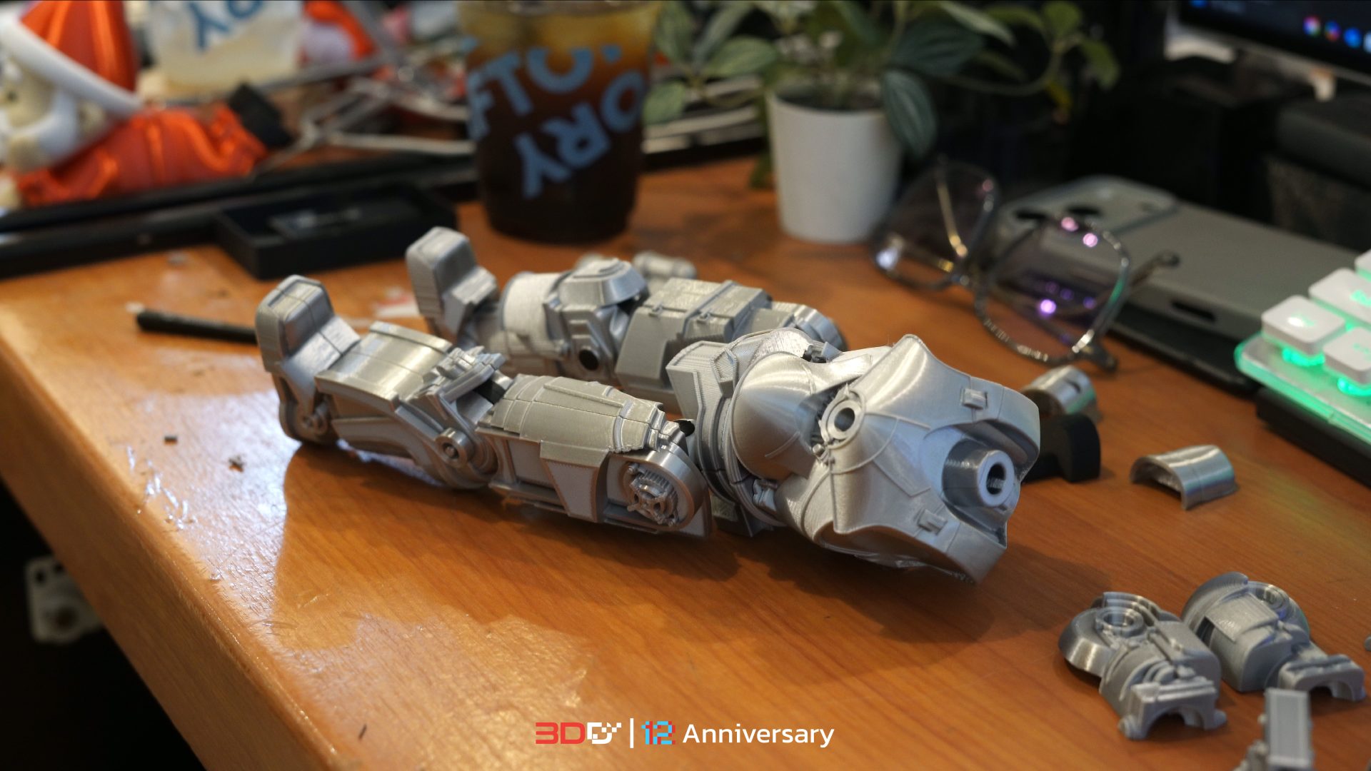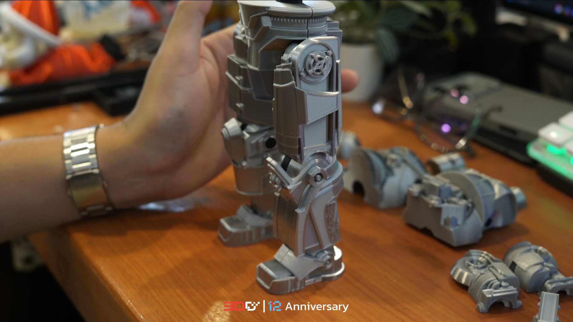หลังพิมพ์เสร็จ เรามาเริ่มประกอบจาก ส่วนขากันก่อน ไล่จากล่างขึ้นด้านบนอย่างเป็นลำดับ จนไปถึงลำตัว แขน และส่วนหัว ชิ้นส่วนถูกออกแบบมาให้เข้าล็อกพอดี ทำให้การประกอบไม่ยุ่งยาก ประกอบแปปถึงเราก็ทำเสร็จได้