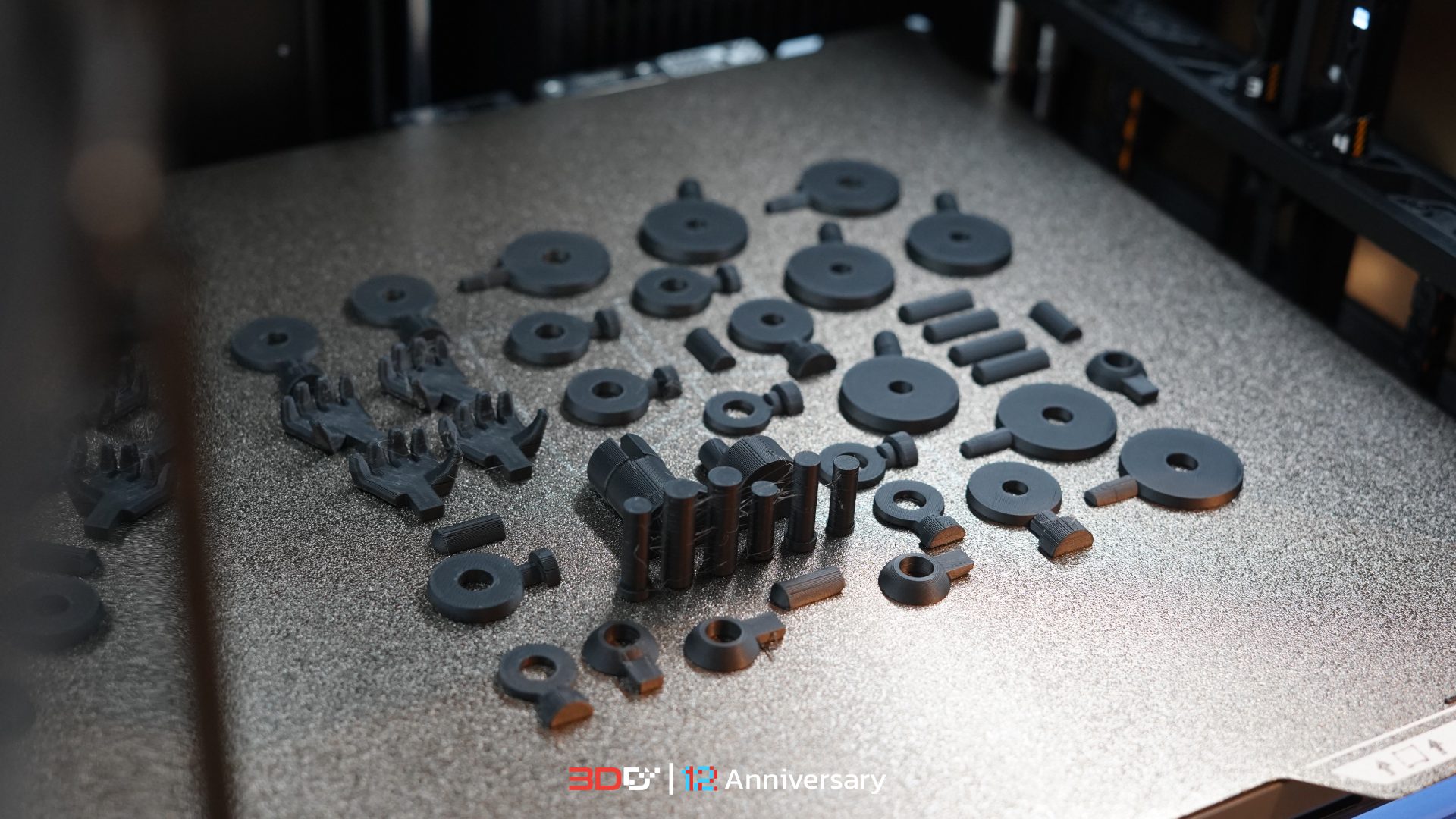 การพิมพ์แยกเป็น 2 ถาด ถาดแรกพิมพ์ชิ้นส่วนชุดเกราะด้วยเส้น Bambu Lab PLA Silk+ สีเงิน ผิวงานที่ได้จะเรียบเนียน เงาวาว เล่นแสงสวย ให้ความรู้สึกคล้ายโลหะผิวแบบสแตนเลสจริงๆ อีกถาดพิมพ์ชิ้นส่วนข้อต่อและโครงใน ด้วย เส้นพลาสติก Bambu Lab PLA Lite สีดำช่วยให้โมเดลเพิ่มรายละเอียดดูมีมิติมากขึ้น  เมื่อกดสั่งพิมพ์ เครื่อง Bambu Lab สามารถทำงานได้อย่างเสถียรและแม่นยำ ทำให้ชิ้นงานที่ออกมาคมชัด ผิวสวย แทบไม่ต้องขัดแต่งเพิ่ม