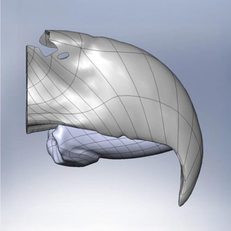 - วิศวกรการแพทย์ Nate Calvin เข้ามาช่วย โดยทำแม่พิมพ์ส่วนจมูก, สแกน 3D, ปรับแบบในซอฟต์แวร์ แล้วพิมพ์ปากเทียมด้วยโพลิเมอร์ไนลอน