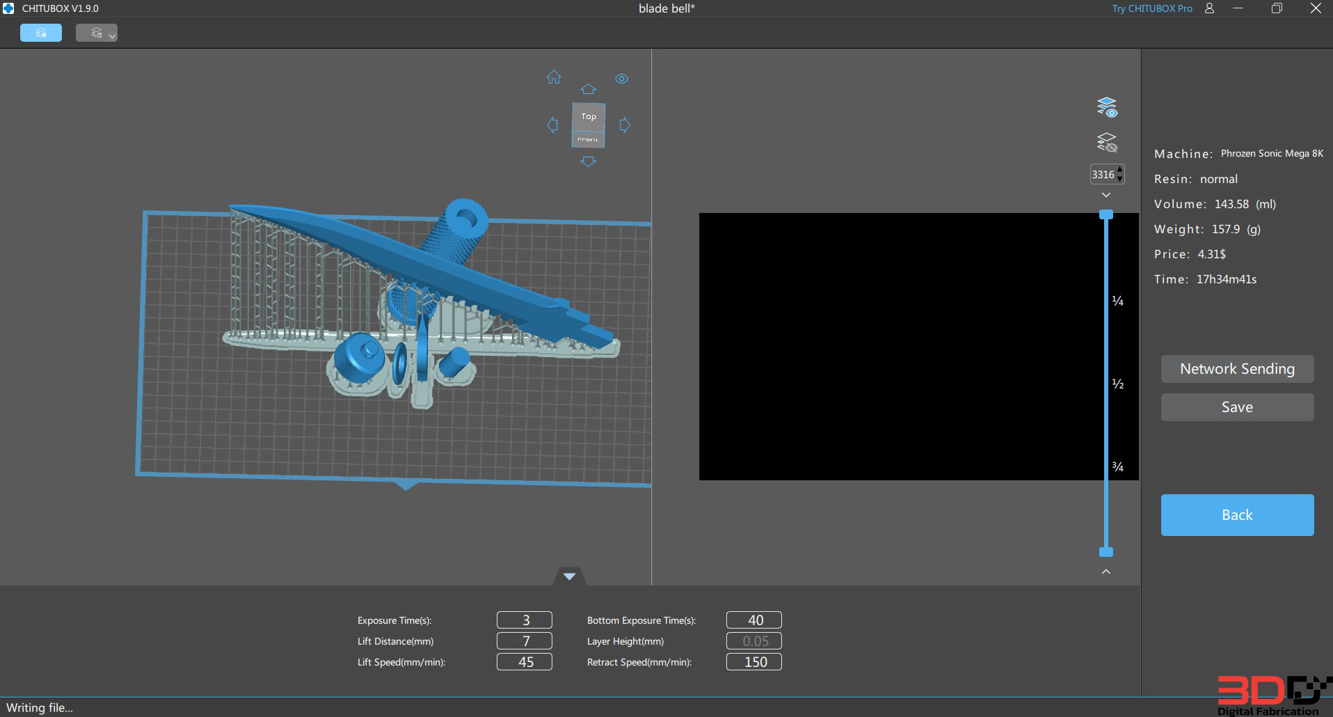 ใช้โปรแกรม CHITUBOX ในการสั่งงานพิมพ์ เวลาที่ได้ กับเวลาที่พิมพ์จะไม่ตรงกันนะครับ