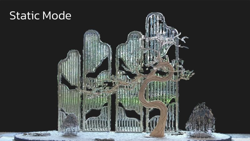 ดูเหมือนเป็นวัตถุ 3 มิติเลย แต่ที่จริงคือการประมวลผลภาพจากกล้องร่วมกับการใช้ Point Cloud เพื่อสร้างแบบจำลอง 3D (ไม่ใช่ทั้ง 3D Mesh และ Point Cloud)