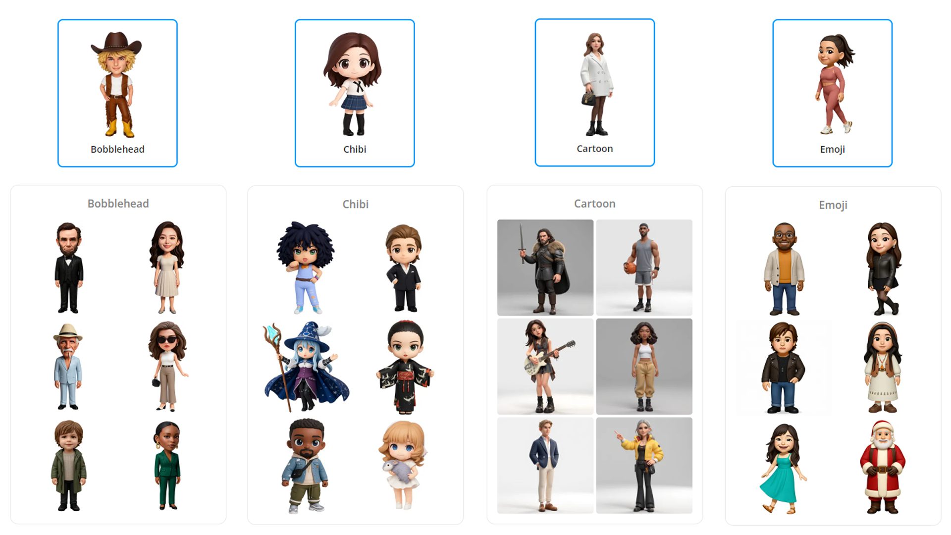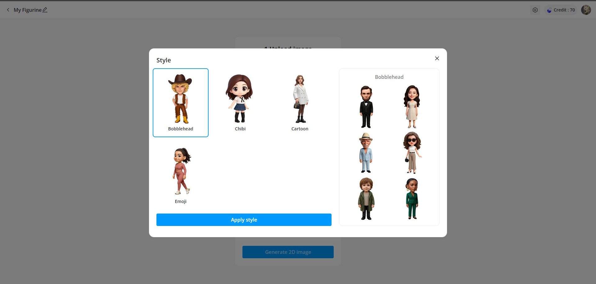 เลือก Style โดยกดที่ลูกศร “>” ให้เลือก 4 แบบ Bobblehead, Chibi, Cartoon, และ Emoji
