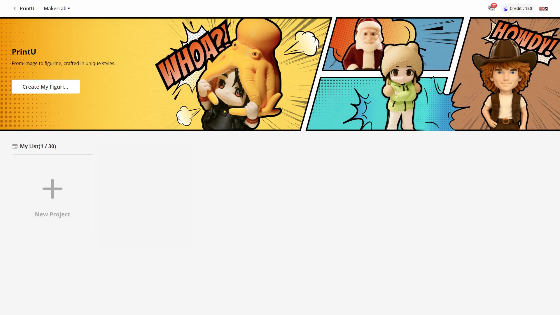 กดที่ปุ่ม “Create My Figurine” หรือ “+ New Project”ได้เลย