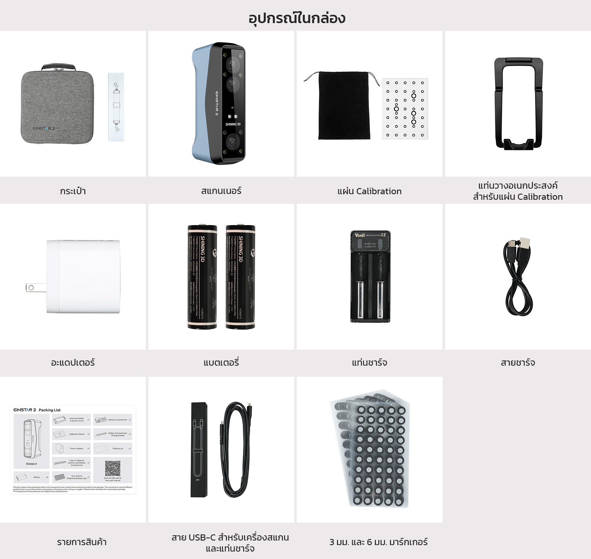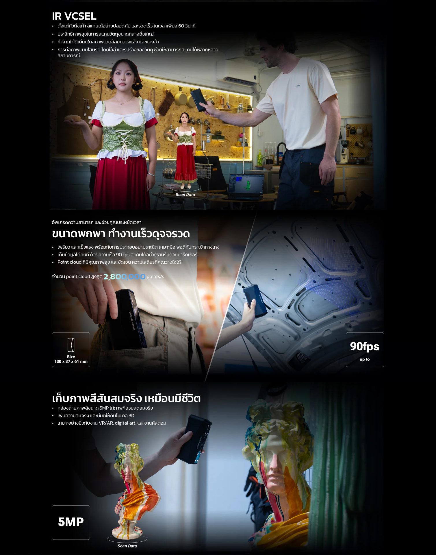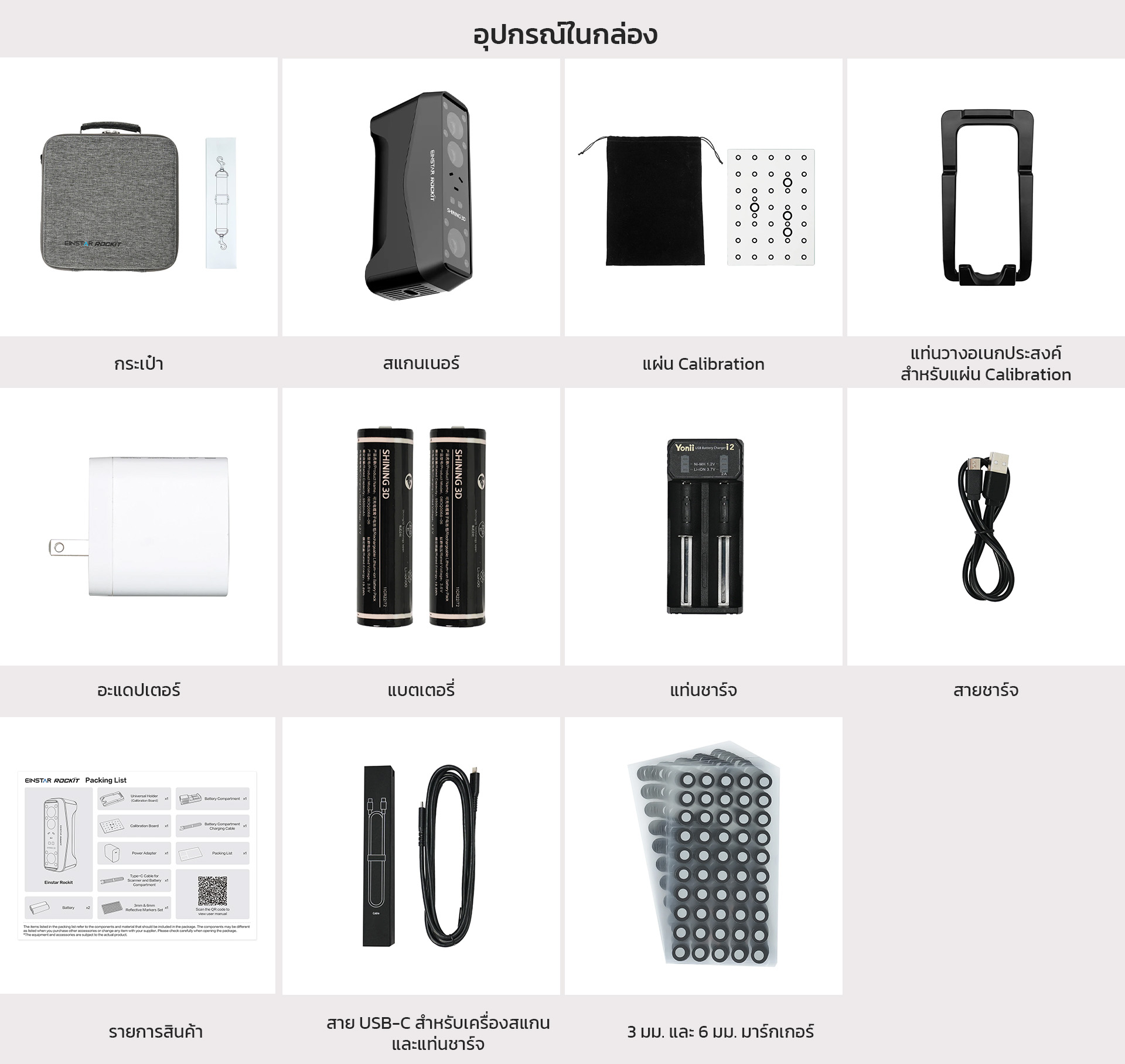 | รูปแบบไฟล์ที่ได้ | STL, OBJ, PLY, 3MF, ASC | ระดับของเลเซอร์ | Class 2 |