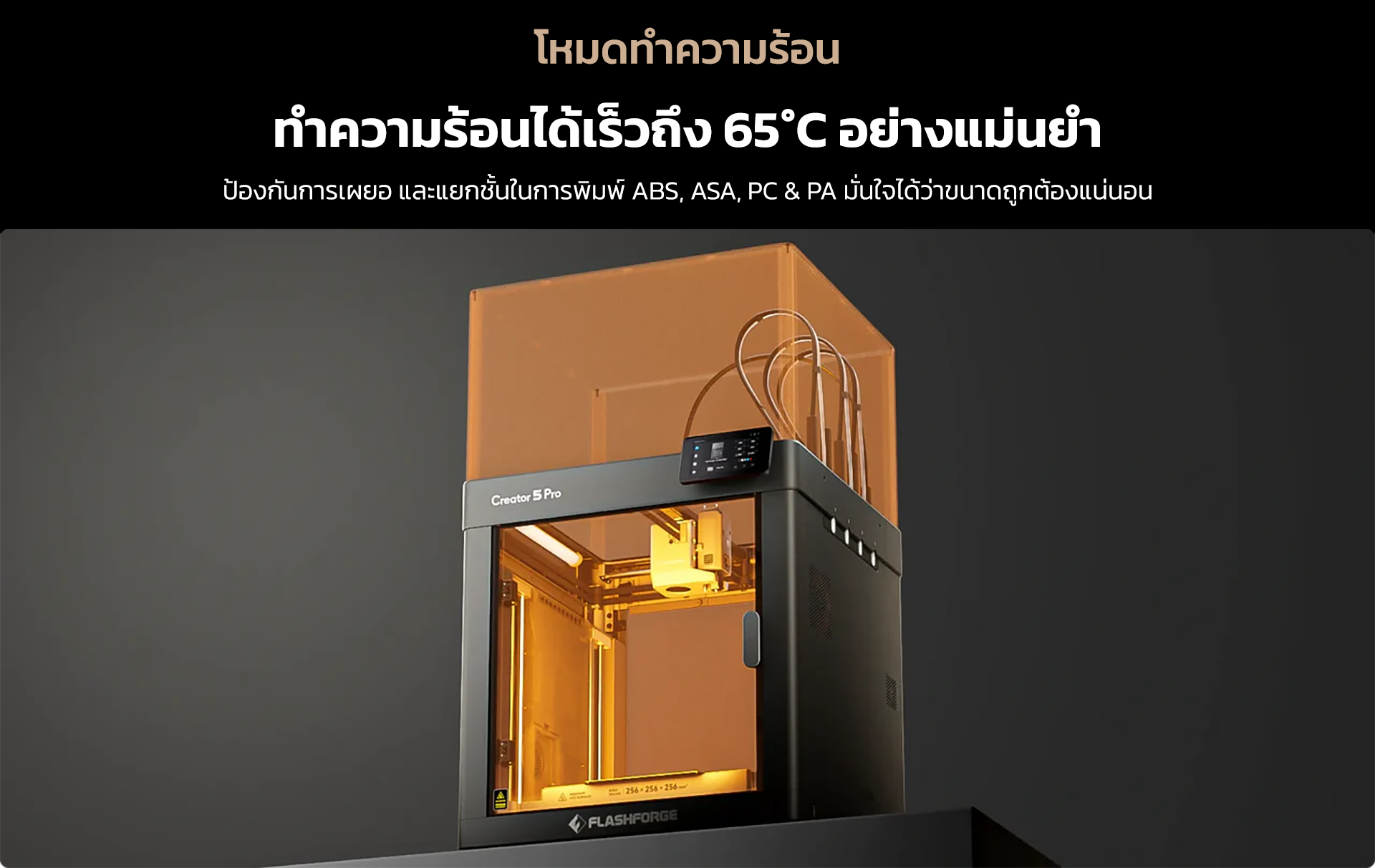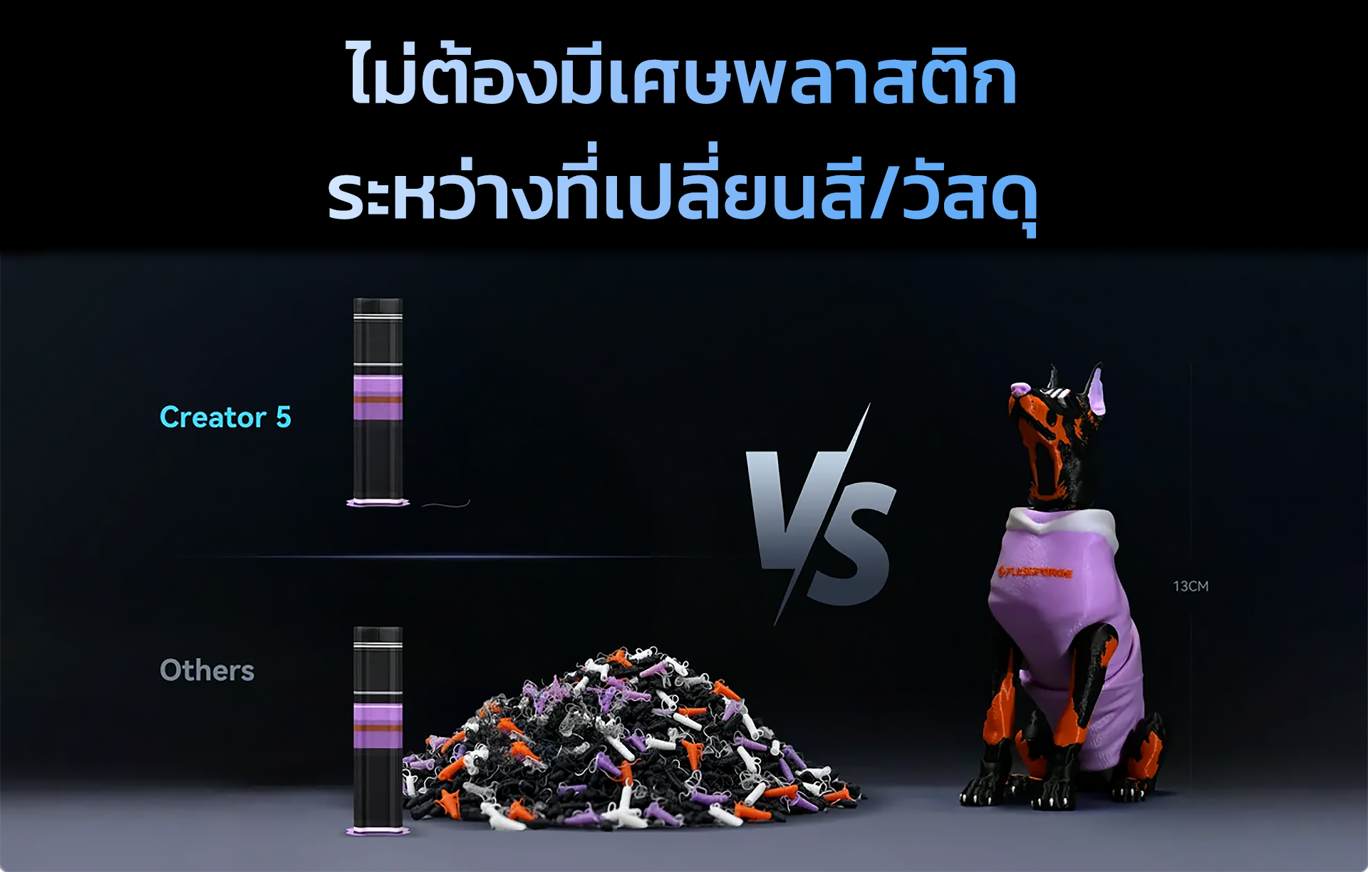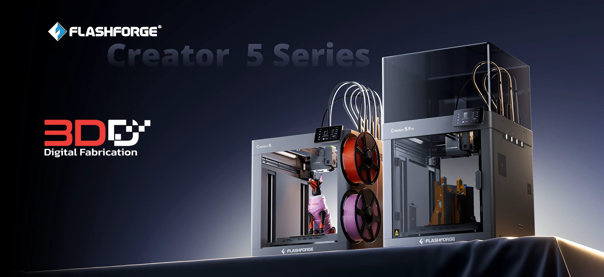 Flashforge Creator 5 Pro เป็นเครื่องพิมพ์ 3 มิติความเร็วสูง 4 หัวพิมพ์ ที่มาพร้อม ระบบเปลี่ยนหัวพิมพ์ FlashSwapTM ออกแบบมาสำหรับการพิมพ์หลายสี และหลายวัสดุโดยมีเศษพลาสติกเกือบเป็นศูนย์ แตกต่างจากระบบแบบ AMS ที่ใช้หัวฉีดร่วมกันเพียงหัวเดียว ทำให้ต้องฉีดพลาสติกทิ้งเป็นจำนวนมาก ระบบเปลี่ยนหัวพิมพ์ที่แท้จริงนี้ มีหัวพิมพ์อิสระสี่หัวทำให้ไม่ต้องเสียเนื้อที่สำหรับช่องขนาดใหญ่เพื่อทิ้งเศษพลาสติกอีกด้วย