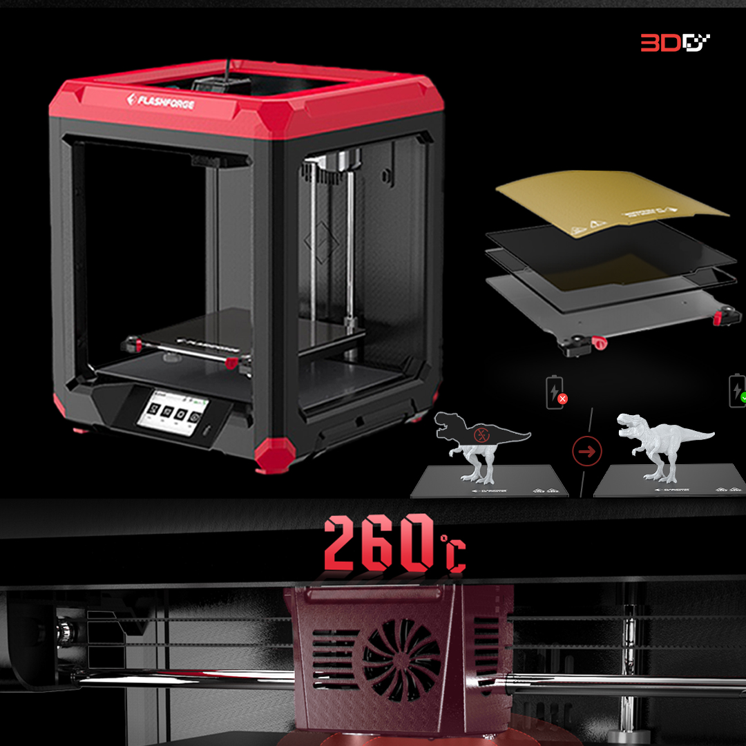 โดยแผ่นรองพิมพ์ด้านบนเป็นแบบ PEI ทำให้เวลาพิมพ์ตัวชิ้นงานจะติดแผ่นได้ง่ายขึ้น และยังเป็นแบบ Flexible ที่สามารถบิดงอเพื่อแกะโมเดลออกจากแผ่นพิมพ์ได้ภายใน 3วินาที