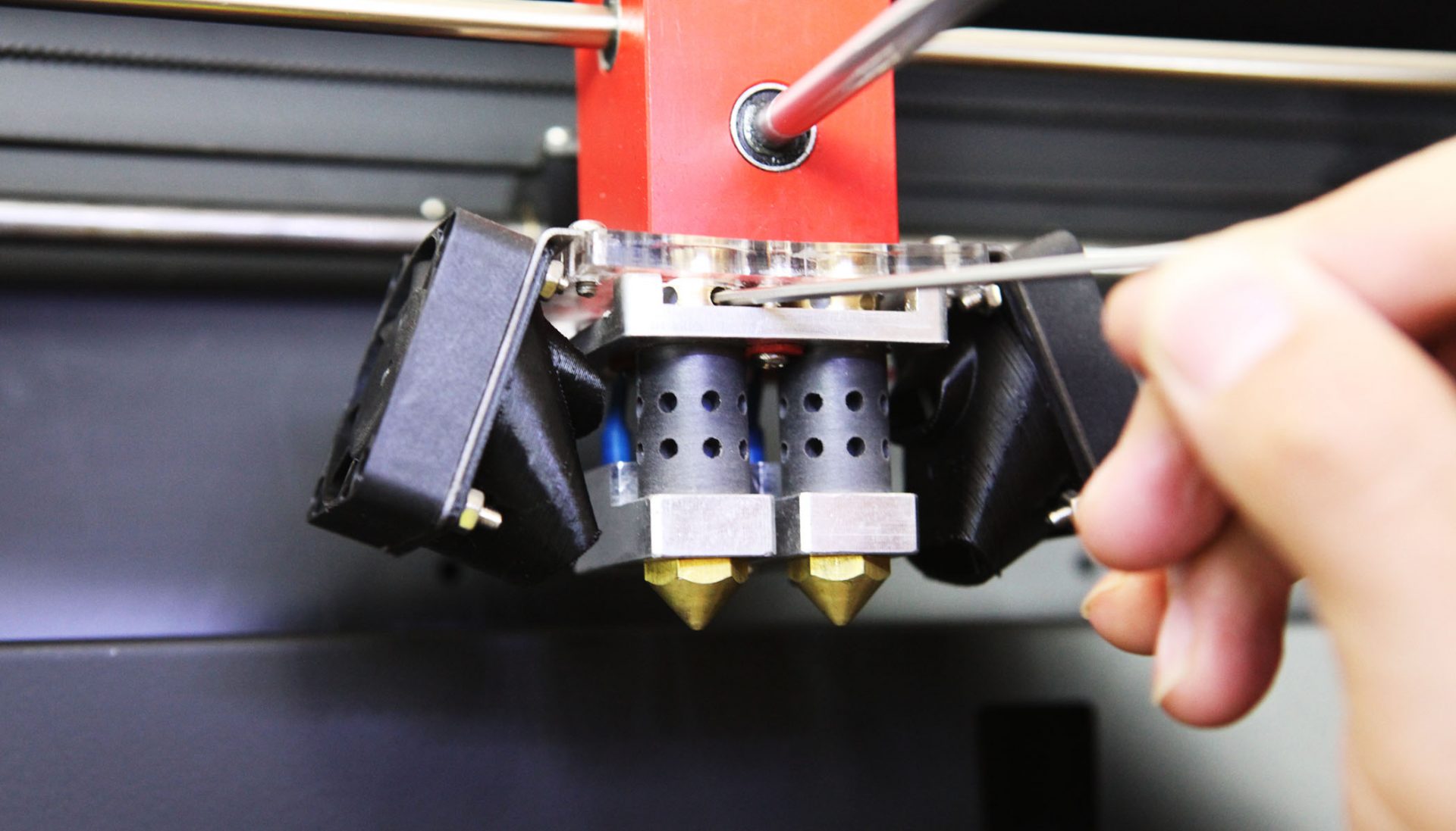 1. มีสองหัวฉีด สามารถพิมพ์ได้ 2 สี หรือ 2 วัสดุพร้อมกัน