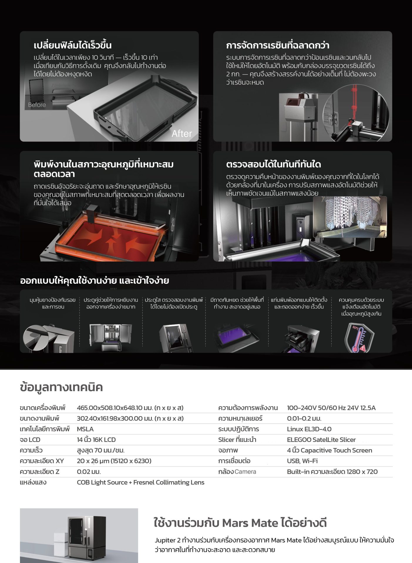 เมื่อผสานรวมกับถาดทำความร้อน และฟังก์ชันการตรวจสอบอัจฉริยะ คุณสมบัติเหล่านี้ทำให้การพิมพ์ง่ายขึ้น และเชื่อถือได้มากขึ้นอย่างเห็นได้ชัด โดยเฉพาะอย่างยิ่งเมื่อทำงานกับเรซินชนิดพิเศษ หรือเรซินที่มีความหนืดสูง