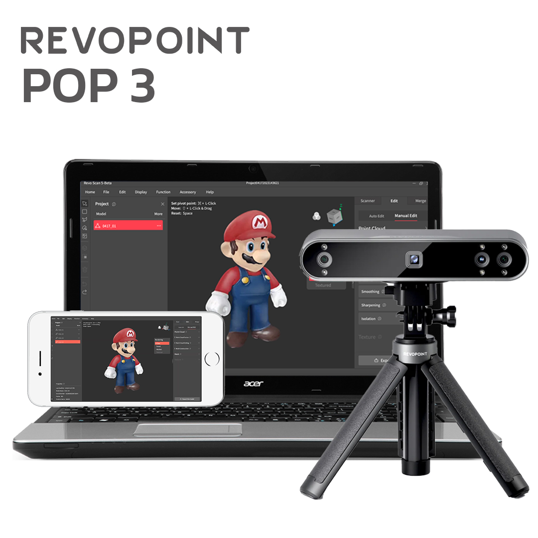POP 3 เป็นเครื่องสแกน 3 มิติที่ใช้เทคโนโลยี Biocular Dual Camera Infrared Light ที่มีความแม่นยำ ขนาดของตัวเครื่องกะทัดรัด และมีความแม่นยำถึง 0.05 mm. สแกนเก็บสีและผิวงานได้ดี