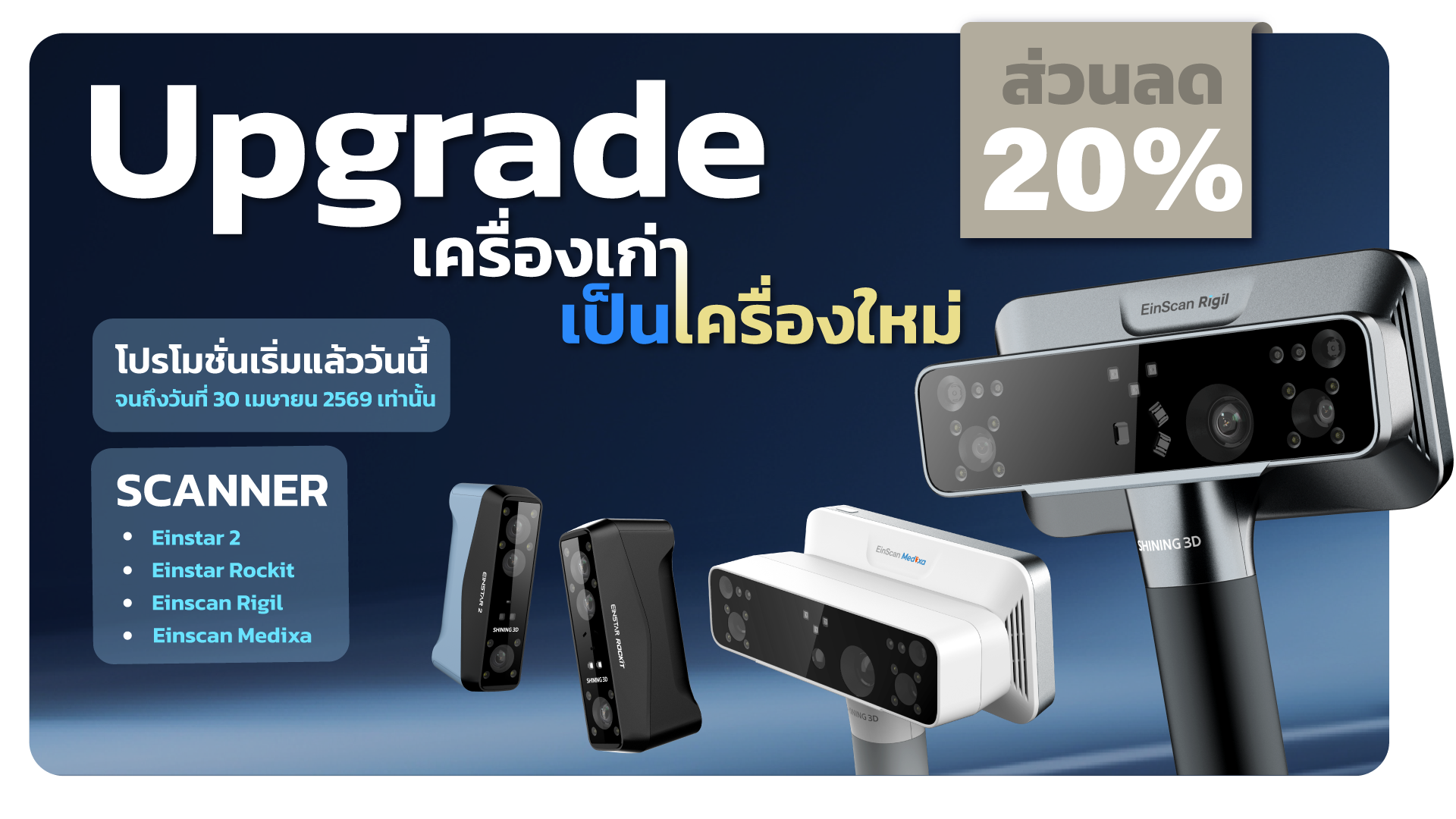 เพียงลูกค้านำเครื่อง Scanner รุ่นเก่าใน Series EinStar หรือ EinScan รุ่นก่อนหน้า มาเข้าร่วมโปรโมชั่นกับเรา รับไปเลยทันทีส่วนลด 20% สำหรับการซื้อเครื่อง Scanner รุ่นใหม่