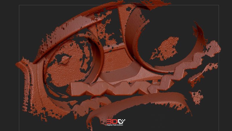 ผมเริ่มจากนำเข้าไฟล์สแกนที่ได้จาก Raptor X เข้าสู่โปรแกรมออกแบบ จากนั้นเริ่มสร้างโมเดลใหม่ขึ้นมาทับบนไฟล์สแกน โดยค่อย ๆ ปรับให้ตรงทั้งขนาด ตำแหน่ง และรูปทรงกับของจริงมากที่สุด