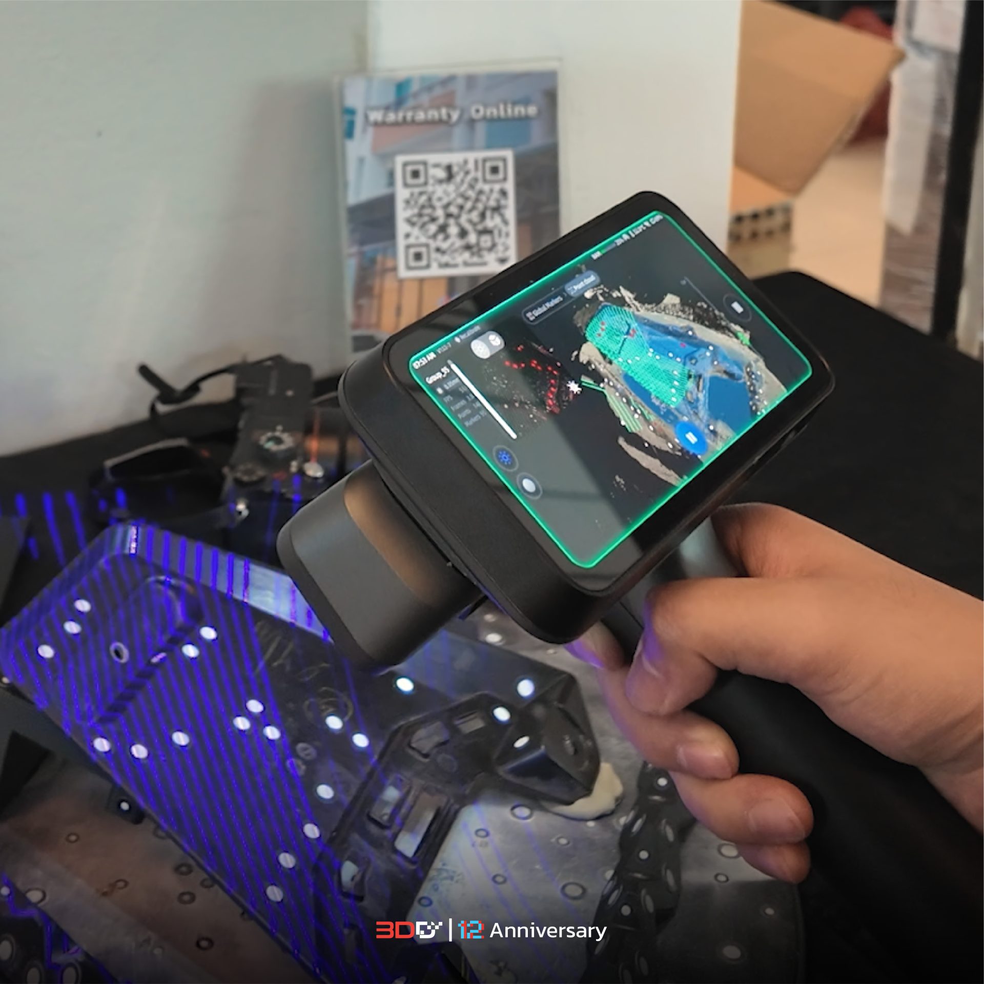 หัวใจสำคัญของกระบวนการนี้เริ่มต้นที่การจับภาพรูปร่างของชิ้นส่วนเดิมให้ได้อย่างแม่นยำที่สุด ในตัวอย่างนี้คือการสแกน บังโคลนหลังของมอเตอร์ไซค์ ที่ถูกถอดออกมาจากตัวรถเรียบร้อยแล้ว และเราเลือกใช้เครื่องสแกน 3 มิติอย่าง EinScan Rigel ซึ่งเป็นเครื่องมือระดับมืออาชีพที่ขึ้นชื่อเรื่องความละเอียดและความแม่นยำสูง แม้จะเป็นชิ้นส่วนที่มีความโค้งเว้าซับซ้อน หรือมีรายละเอียดเล็กน้อย เครื่องสแกนก็จะสามารถแปลงรายละเอียดเหล่านั้นให้เป็น “ข้อมูลเมช” (Mesh Data) ได้อย่างครบถ้วน