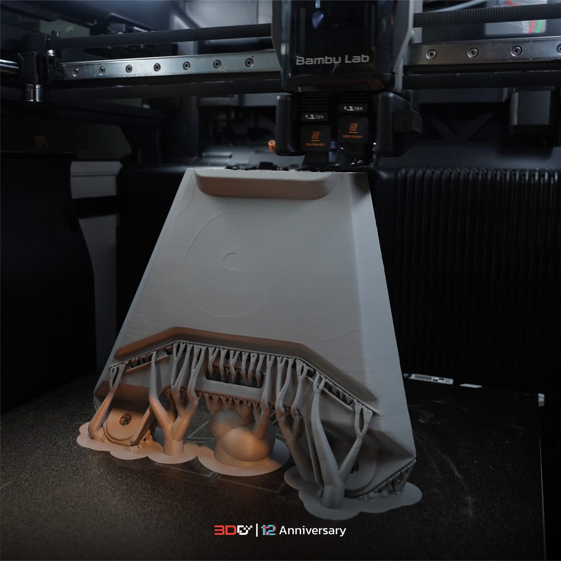 เมื่อได้ไฟล์ .STL ที่สมบูรณ์แล้ว ก็ถึงเวลาสร้างชิ้นส่วนนั้นให้เป็นจริง ผ่านเครื่องพิมพ์ Bambu Lab เราใช้เครื่องพิมพ์ Bambu Lab H2D ซึ่งเป็นที่ยอมรับในเรื่องความเร็วและความแม่นยำในการพิมพ์สูง ด้วยคุณสมบัติที่โดดเด่น ทำให้การสร้างชิ้นส่วนอะไหล่มีประสิทธิภาพมากขึ้น Slicing ใน Bambu Lab Studio นำไฟล์ .STL เข้าสู่โปรแกรม Slicer ของ Bambu Lab เพื่อกำหนดค่าการพิมพ์อย่างละเอียด เช่น ความหนาแน่นของไส้ใน (Infill) เพื่อให้ชิ้นงานมีความแข็งแรงทนทานเทียบเท่าอะไหล่เดิม การเลือกวัสดุก้สำคัญไม่แพ้กัน สำหรับชิ้นส่วนมอเตอร์ไซค์ที่ต้องเจอความร้อน, แสง UV, และแรงสั่นสะเทือน เราอาจเลือกใช้พลาสติกวิศวกรรมที่มีความทนทานสูง เช่น ASA, ABS หรือ PETG Carbon Fiber เพื่อให้มั่นใจในอายุการใช้งาน
