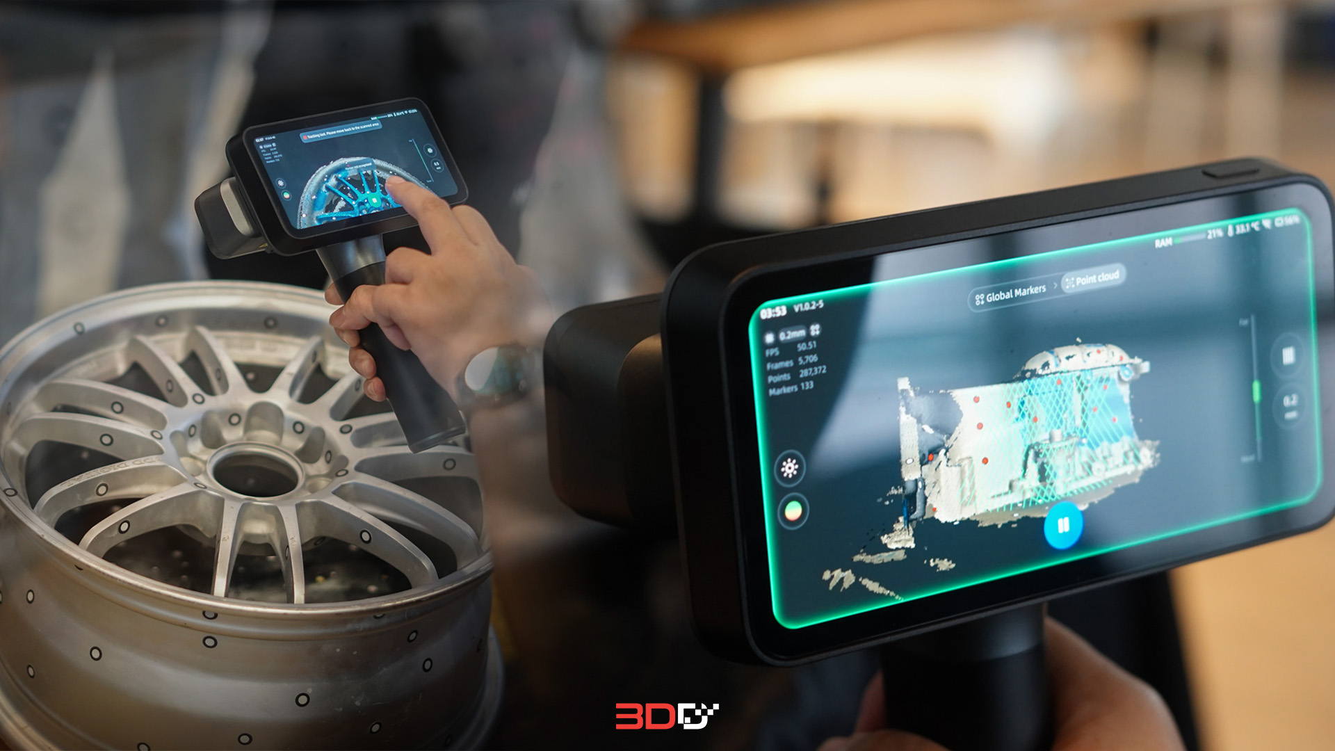 - Handheld 3D Scanner เครื่องสแกน 3 มิติที่ ผู้ใช้งานถือด้วยมือขณะสแกน โดยสแกนเนอร์จะจับภาพและข้อมูลเชิงลึกของวัตถุจากหลายมุม สแกนได้ใหญ่ และ เร็ว สแกนเนอร์เพื่องานทางวิศวกรรม, Reverse Engineer, งานประติมากรรม งานเชิงการแพทย์