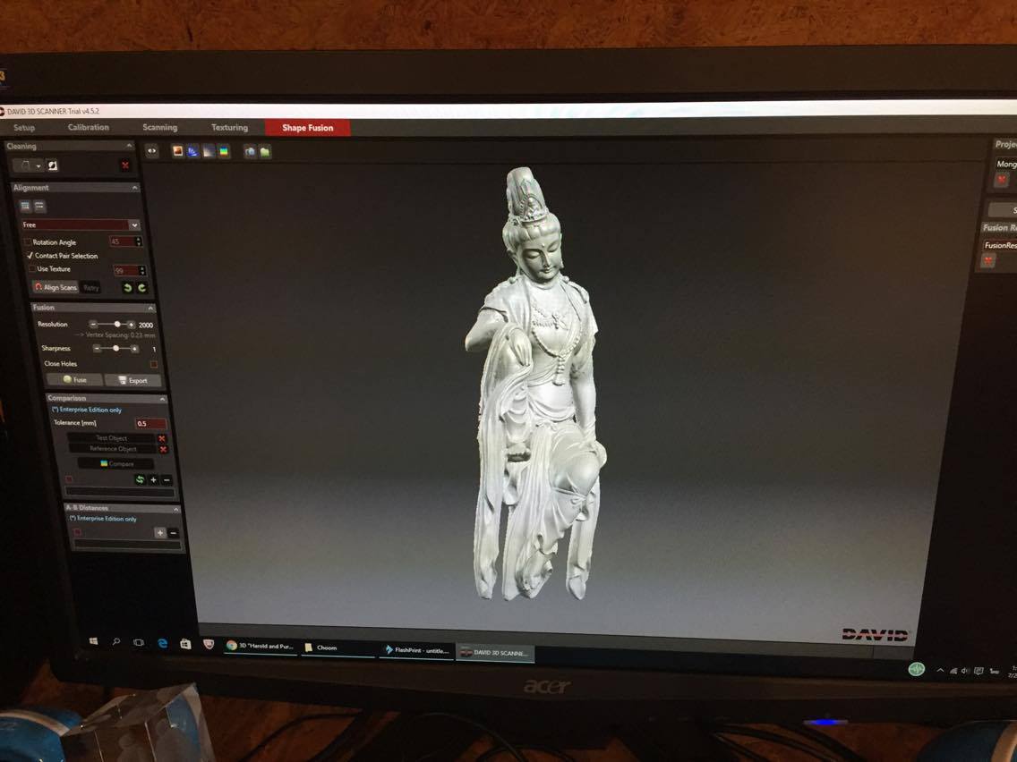 เรามาชมผลงานจากเครื่อง David SLS-3 กันเพิ่มเติมนะครับ คราวนี้มาเพิ่มกันในส่วนของงานสแกนรูปปั้น องค์พระ และงานแกะสลักไม้ งานออกมาคุณภาพสูง-สูงมาก ขึ้นอยู่ว่าต้องการให้ละเอียดขนาดไหน (ความละเอียดกลางๆไฟล์ใหญ่ประมาณ 400Mb หากเลือกสูงมากๆไฟล์จะอยู่หลาย Gb) งานสแกนที่ได้สามารถนำไปใช้กับเครื่องมืออื่นๆต่อไป เช่น เครื่อง 3D Printer, CNC Router กัดโฟม, เครื่อง RP หรือ DLP