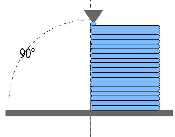 เมื่อเรางานที่พิมพ์ขึ้นรูปในแนวดิ่งมันก็จะไม่มีปัญหาใดๆ เลย เลเยอร์บนก็จะซ้อนอยู่บนเลเยอร์ก่อนหน้าพอดี แต่พอเริ่มมีความเอียง ขอบเลเยอร์จะเลื่อนออกไปจากเลเยอร์ก่อนหน้านั้น ทำให้บางส่วนของเส้นที่ฉีดออกมาจะยื่นไปในอากาศ
