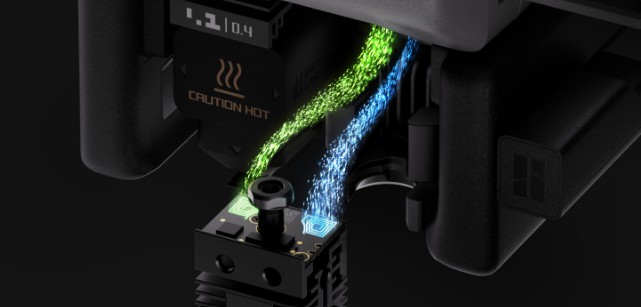 • รองรับ Multi-material แบบแท้จริง – สามารถเลือกให้หัวพิมพ์แต่ละอันจดจำค่าชนิดเส้น/สีของตัวเอง ที่มีอุณหภูมิการหลอมละลายต่างกัน โดยไม่ต้องกังวลว่าจะปะปนกัน