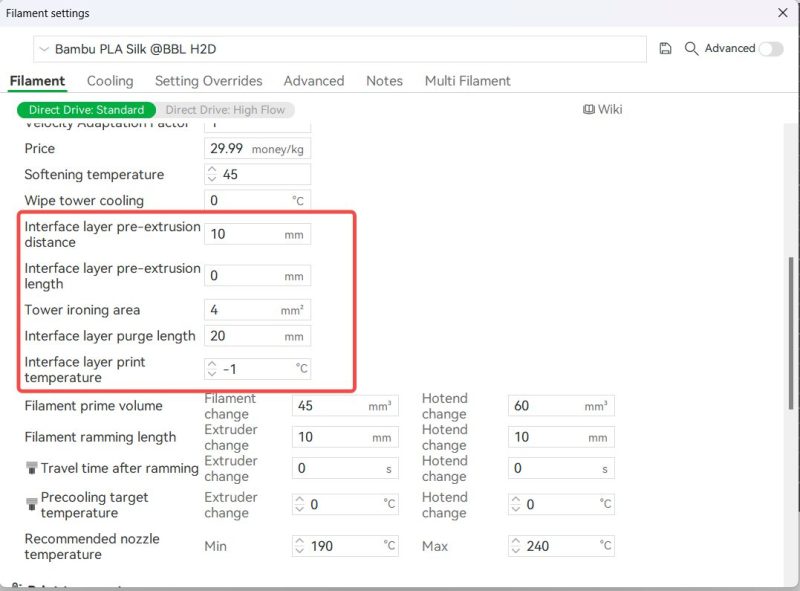 • เมื่อเปิดไฟล์ 3MF เก่าที่มีการปรับเปลี่ยนข้อมูล “Top Surface Flow Ratio” ข้อมูลนั้นจะถูกกำหนดให้อยู่กับหัวฉีดด้านซ้าย ส่วนหัวฉีดด้านขวาต้องกำหนดใหม่ด้วยตัวเอง