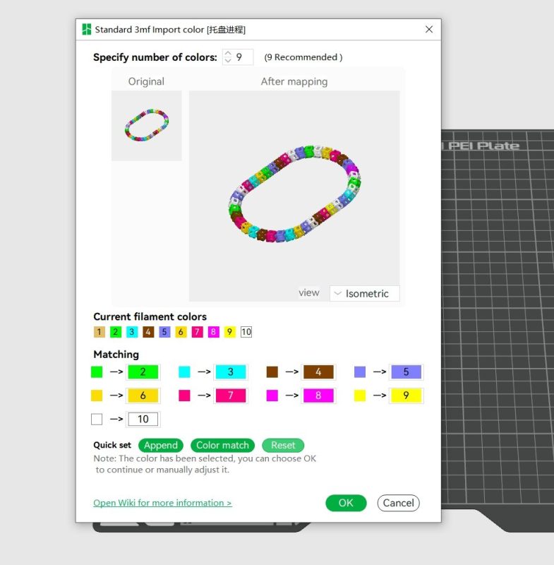 เพิ่มการรองรับข้อมูลสีจากการ Import ไฟล์ 3MF ที่มีข้อมูลสีมาด้วย ขั้นตอนจะเหมือนกับการทำ multi-color OBJ: เลือกข้อมูลสีจากแผนผัง แล้วนำไปใช้