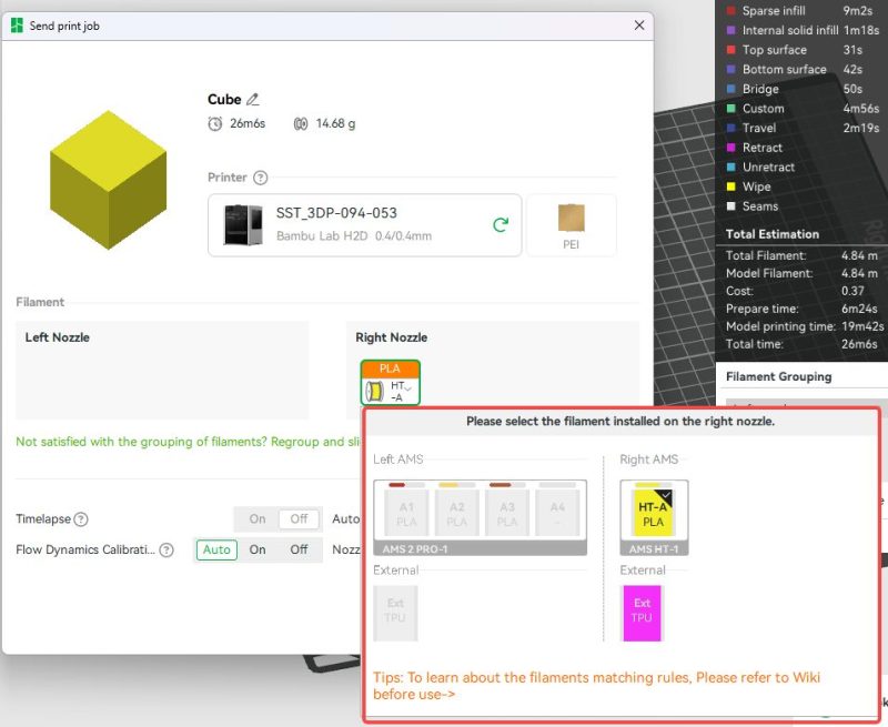 4. ปรับปรุงผังการกำหนดเส้นที่ใช้เมื่อกดปุ่มส่งงานไปพิมพ์ ลดความสับสนในการเลือกสี Studio จะแสดงข้อมูลของ AMS ทั้งหมด ทำให้การแสดงผลชัดเจนขึ้น รายละเอียดเพิ่มเติมอ่านต่อได้ที่ Bambu Wiki.