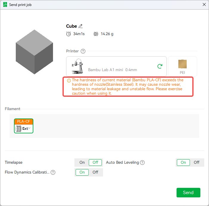 5. ปรับปรุงการตรวจสอบชนิดของเส้นที่มีความแข็งเกินกว่าที่หัวพิมพ์จะรับได้ Studio จะไม่ปิดกั้นการพิมพ์ในทันทีทันใด และคำเตือนจะปรากฏให้เห็นชัดเจนขึ้น