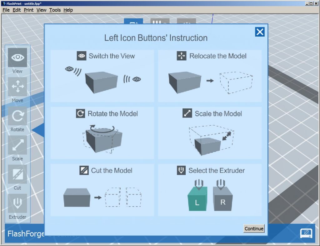 ขอแถมอีกนิดครับ FlashPrint ได้เตรียมตัวช่วยให้ทำความเข้าใจการใช้โปรแกรมสำหรับมือใหม่มาให้ด้วย โดยกดที่เมนู Help และเลือก First Run Wizard ก็จะมีคำอธิบายพร้อมรูปภาพเข้าใจง่ายปรากฏขึ้นแบบนี้